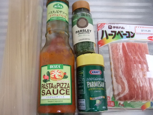 あとは粉チーズと冷凍してあった半額ベーコン。