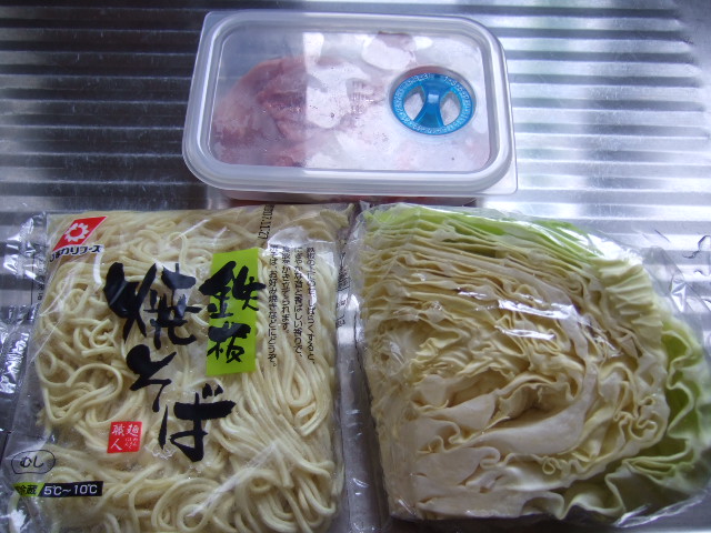 冷凍庫に入れてあった焼きそばの麺と豚こま切れを