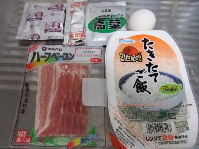 ご飯を温めて入れたところにベーコンを